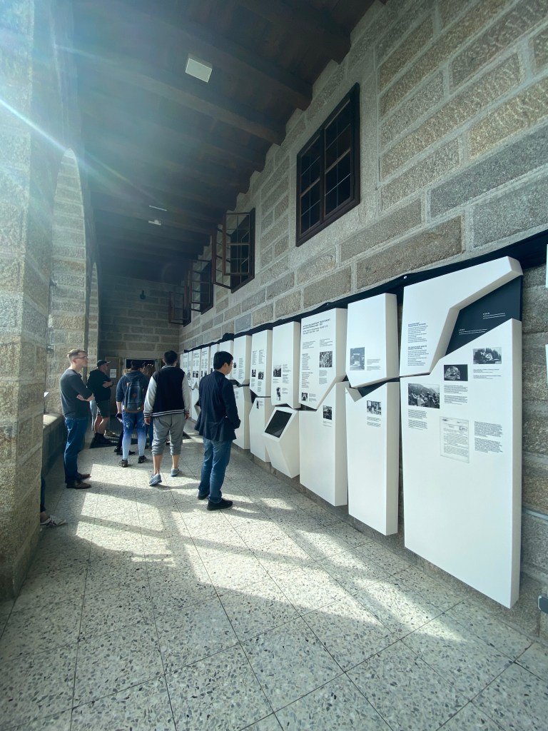 Odată ajunși sus, am putut admira priveliștea Alpilor bavarezi, am făcut o plimbare cu liftul poleit cu aur, am vizitat ceea ce acum este un restaurant și am aflat câte puțin din istoria acestui loc din câteva panouri informative aflate pe un hol lung, luminat de niște ferestre mari, cu rame din metal.