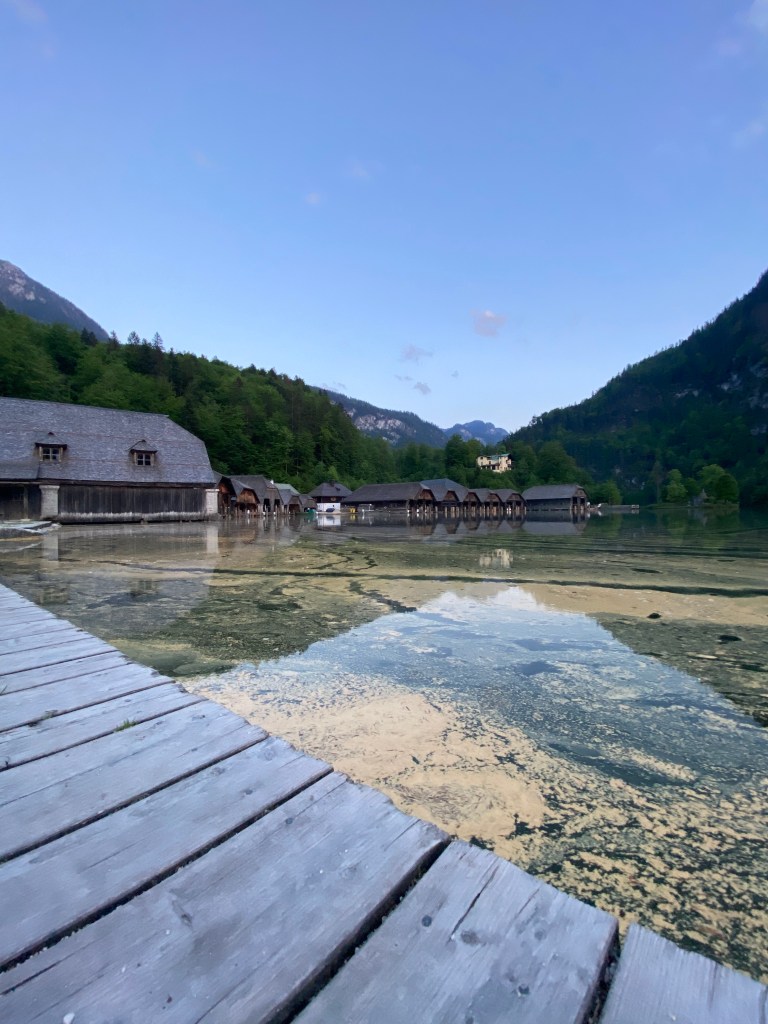 Nu am rămas să mâncăm la restaurantul de acolo, ci am coborât și am mers la Konigsee, care era în apropiere. Drumul de întoarcere a fost mai rapid, nu l-am cronometrat, dar cred ca într-o oră si 45 de minute eram jos. La Konigsee am ajuns destul de infometați și am mâncat la un restaurant de pe malul lacului, Echostuberl, unde mâncarea a fost foarte bună iar priveliștea minunată. Ne-am plimbat apoi puțin prin partea opusă a lacului, care este de obicei mai populară, și ne-am întors la parcare. Parcări există atât la restaurantul acesta, cât și pe partea opusă a lacului, la stațiunea de ski, ambele sunt gratuite și destul de mari cât să găsești loc de parcare.